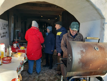 Norra Grönby Mölla, för att höra om året som gått, fika och träffa andra möllemedlemmar. Vi var ca 23 besökare som värmde oss med glögg och grillad korv och delade på de fina vinsterna från lotteriet.